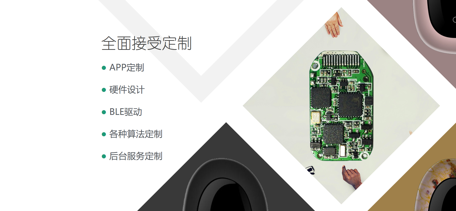 智能手环:我们有丰富的智能手环开发经验,至今已在手环项目上与35家公司深度合作。